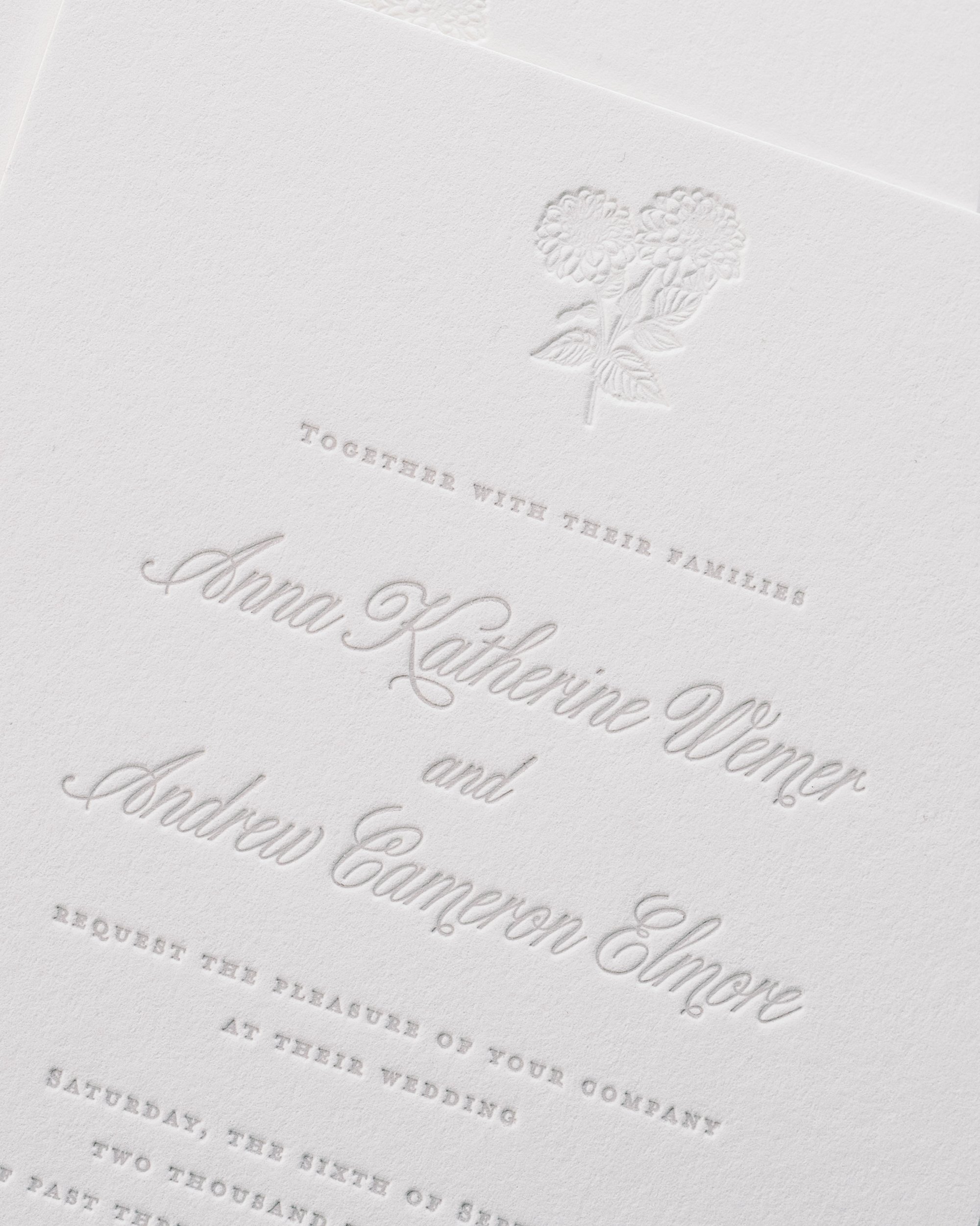 Celebrating the heritage of paper invitations, we embrace centuries-old techniques and materials. We create one-of-a-kind wedding paper with character through thoughtful design and meticulous production—setting the tone for your celebration with an intentional, artistic, and discerning first impression.